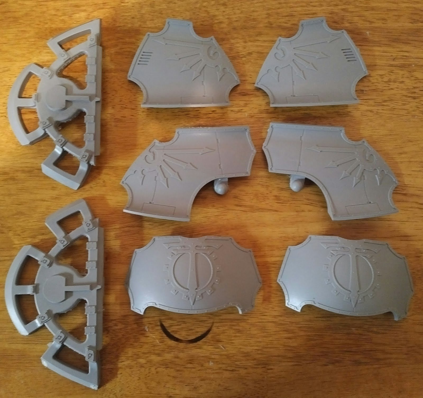 The Warlord features two panels for the elbow armor, two head protection carapace pieces, and chest armor. It also has individual mounts for the carapace weapons and the torso box is built through several panels, some of which are in multiple parts.